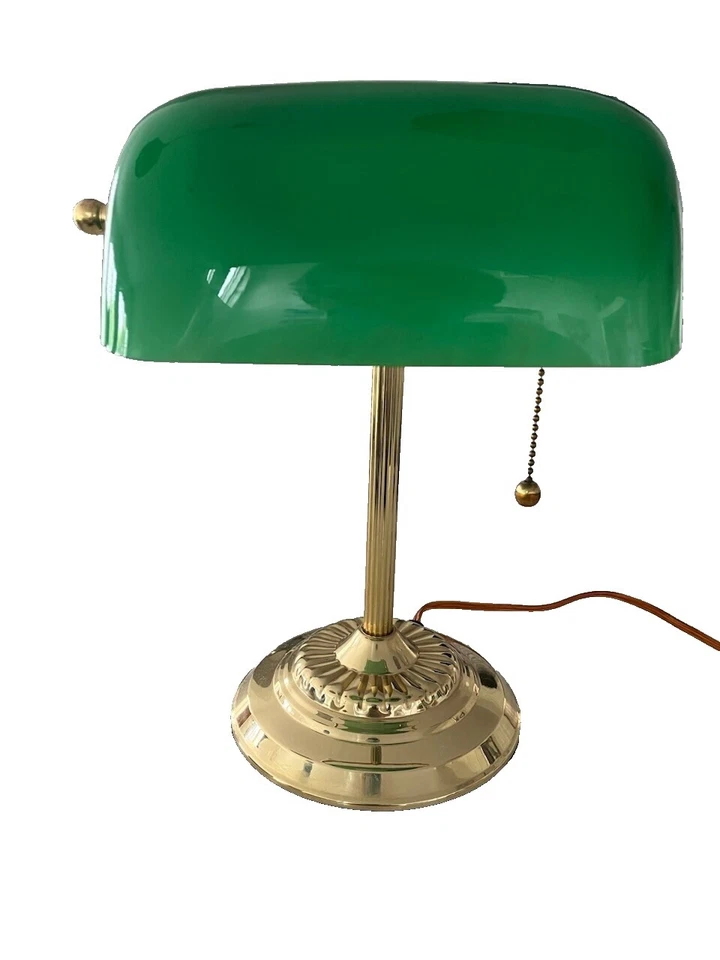 Винтажная настольная лампа банкиров из синего стекла с латунным основанием высотой 13 дюймов рабочая